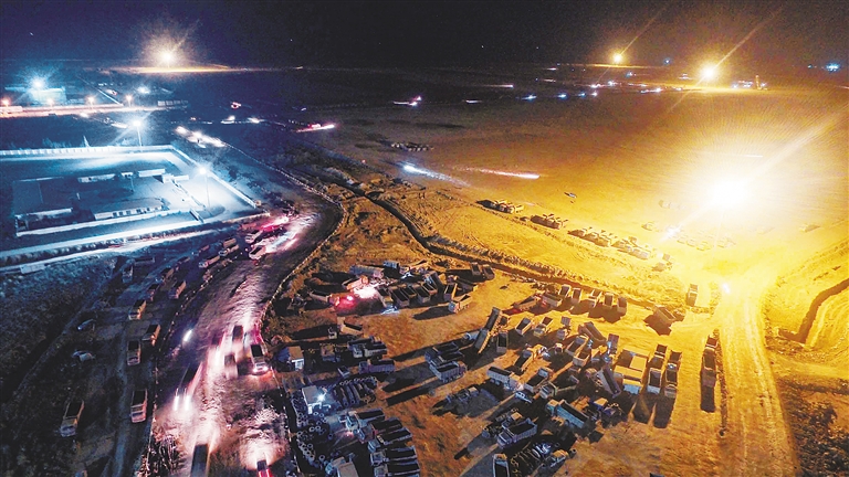 11月27日晚上,在洋浦经济开发区的海南炼化年产百万吨乙烯项目工地上,施工现场一派忙碌景象,车辆来回运输土石方,众多工人在夜色中坚守岗位,奋战一线。