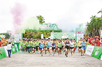 11月30日,2019呀诺达雨林跑在呀诺达景区门区广场鸣枪起跑,500余名中外跑手畅享8公里“氧”生跑奇趣体验,以路跑形式深度体验绿色生态旅游精品、传递全民健身、低碳环保的健康理念。 本报记者 武威 通讯员 曹传佳 摄