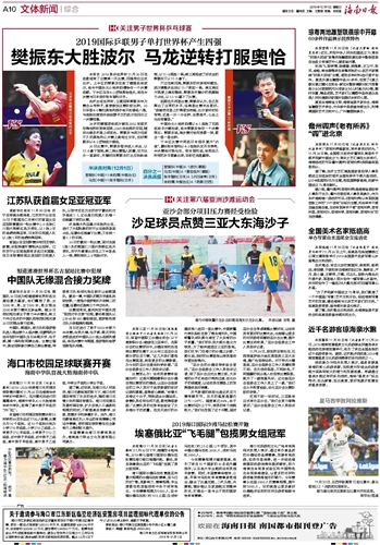 海南日报 文体新闻综合 010 2019-12-011 2019年12月01日 星期日
