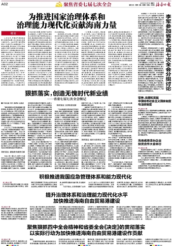 海南日报 聚焦省委七届七次全会 002 2019-12-011 2019年12月01日 星期日