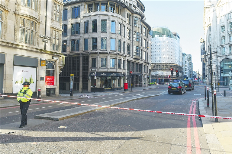 11月30日,在英国伦敦,警察在恐怖袭击事件现场附近警戒。