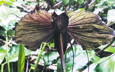 事实上,这种难得一见的长着黑色花朵的植物,正规学名叫箭根薯,是蒟蒻薯属多年生草本植物。
