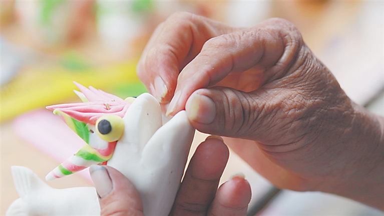 长年劳作让程祝永的双手黝黑发皱,但就是这一双手却能在米团上施加“魔法”,须臾之间,一个个沉睡的米团便化身五彩斑斓、带着表情并承载祝福的周岁粿。附近十里八乡的孩子们举行“抓周”仪式都少不了程祝永制作的周岁粿,他就像孩子们人生中第一个带着礼物和希冀而来的“圣诞老人”。