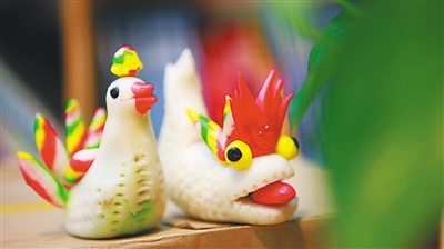 程祝永在制作凤凰鸟时便是先分别将躯干、翅膀、尾巴、花冠等进行揉捏,最后再用细竹签将制作好的各个部位连接固定。每个造型的胚体完成后,还要再用梳子、镊子、小刀、竹针等工具通过捏、按、点等手法塑造出小动物身上的褶皱或花朵上的纹理,以达到栩栩如生的效果。造型制作结束后,将成品在锅里蒸上大约20分钟使其变得挺括更易保存,这样下来一套完整的周岁粿制作流程就完成了。