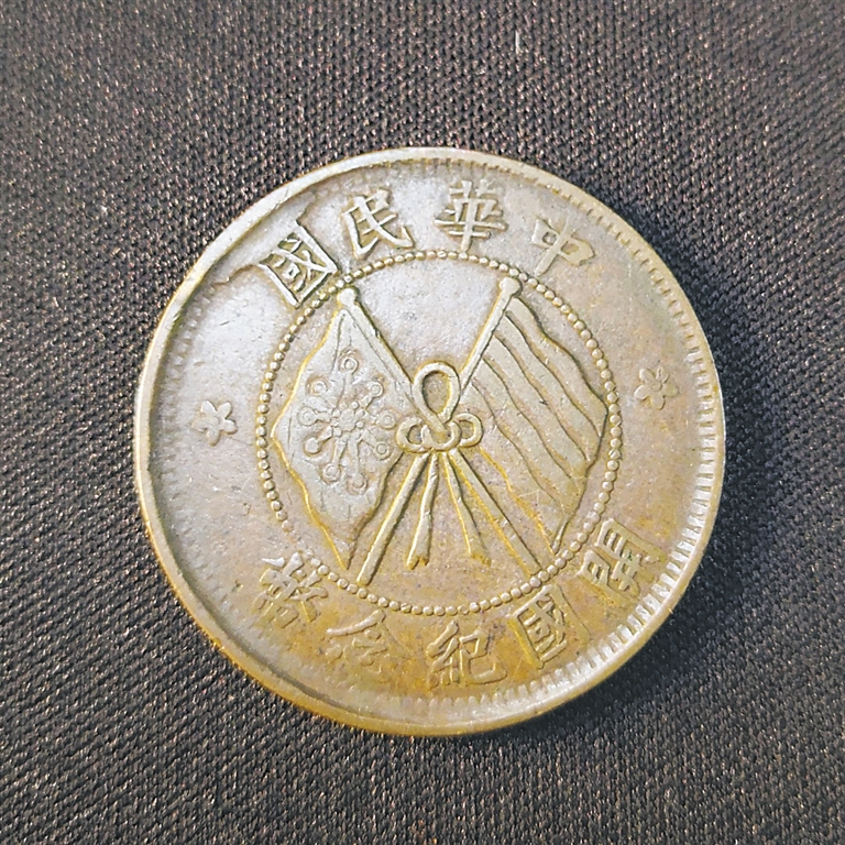 辛亥革命以后,各省革命政府以利之所在,开始自行铸造铜元,民国时期最为常见的是开国纪念币和当制钱XX文的铜元,两种铜元一面均有交叉旗帜的双旗,左为十八星旗,右为五色旗,中间系结带,双旗两侧有对称花朵或长枝花饰之,有些双旗上部还有五星或花朵装饰;另一面镌嘉禾图案,有些嘉禾中部还有面文如“十文”“壹枚”等。十八星旗又称首义之旗,代表十八个行省,武昌起义胜利后,各省云起响应,这面旗帜是辛亥革命胜利的标志,五色旗则象征着汉、满、蒙古、回、藏五族共和。