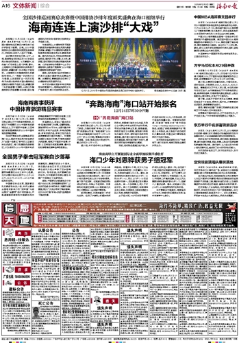 海南日报 文体新闻综合 016 2019-12-031 2019年12月03日 星期二