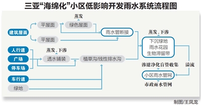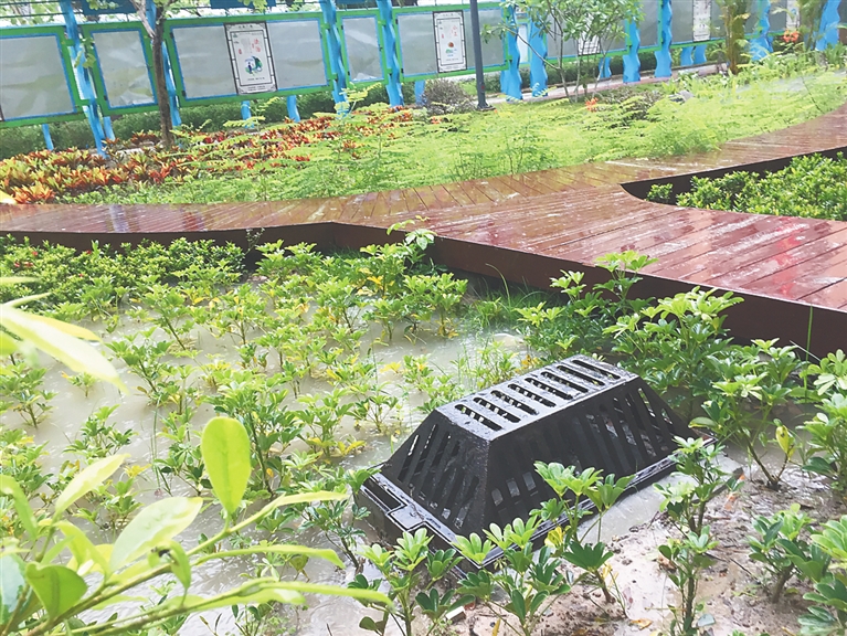 “‘海绵化’小区具体主要通过雨污分流改造、雨水管网改造、景观绿化改造、道路修复改造、生态停车场改造、雨水收集回用设施建设等方面进行建设。”三亚市自然资源和规划局有关负责人说。