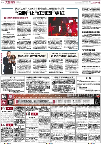 海南日报 文体新闻综合 014 2019-12-041 2019年12月04日 星期三