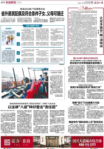 海南日报 本省新闻综合 003 2019-12-041 2019年12月04日 星期三