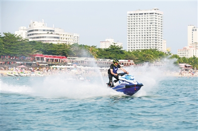 12月3日,海南(三亚)摩托艇精英邀请赛在三亚大东海海域举行,20余名专业摩托艇选手将在3天时间里,角逐坐式水摩竞速赛和障碍赛的桂冠。 据介绍,本次比赛是2019海南亲水运动季的重要组成部分。赛事设置体验环节,市民游客可以通过网上和现场报名的方式,亲身体验摩托艇的魅力。