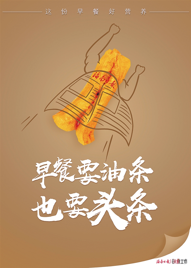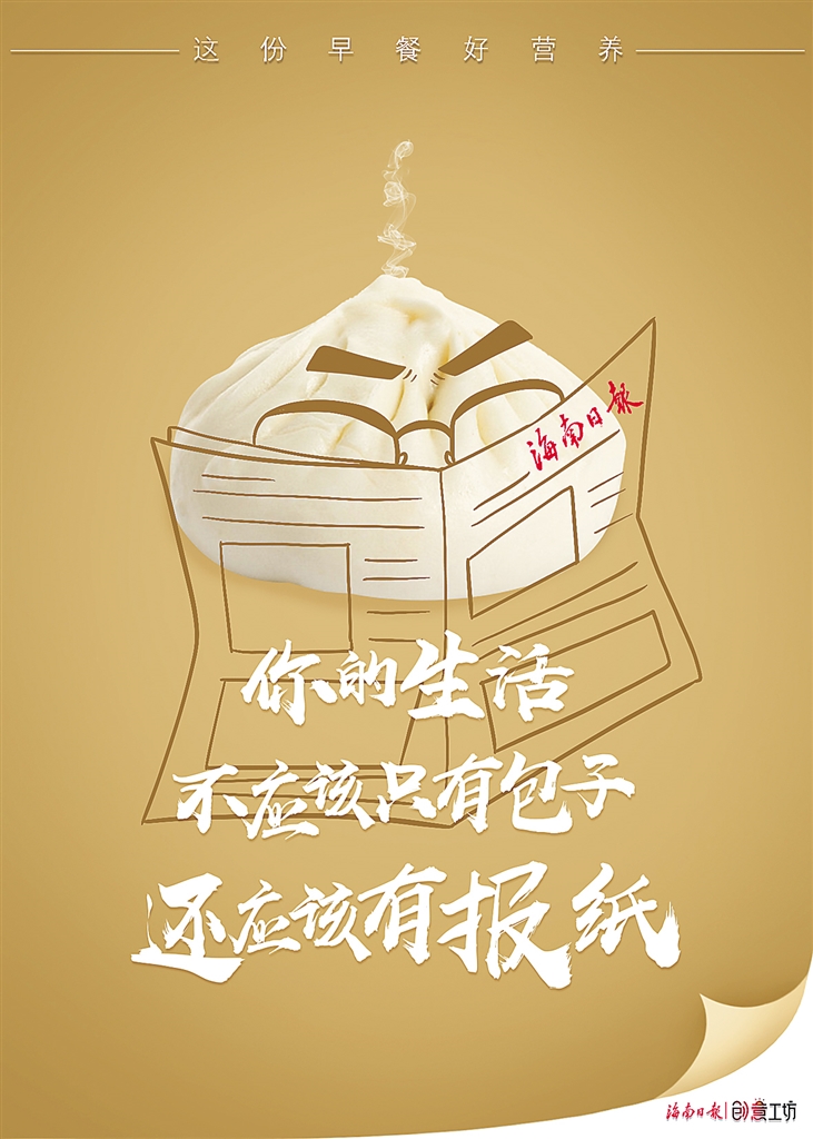 党报党刊是治国理政的重要资源和重要手段,是党的意识形态工作主阵地。当前,正值海南日报大征订工作进行时,海南日报创意工坊以9种海南人最爱的早餐为灵感,推出了这组《这份早餐好营养》海报,轻松幽默而充满哲思的话语配上令人垂涎的早餐图片,为读者勾画了伴着食物香气品读天下大事的美好画面,博得如潮好评。