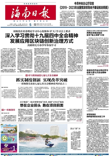 海南日报 头版 001 2019-12-051 2019年12月05日 星期四
