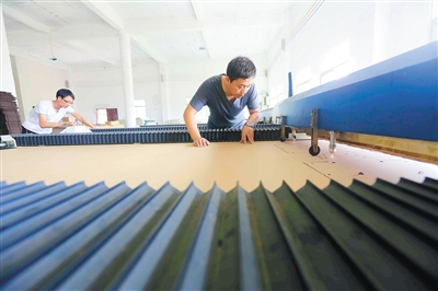 近日,在东方市大田镇新宁坡村的大田新民包装箱厂扶贫生产车间里,工人正在进行激光雕刻作业。