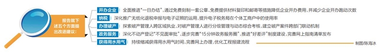 《建议》提出,从国内营商环境改革工作标杆城市的经验和路径来看,建议海口分两步走:眼下先以夯实基础、快速提升为主要目标;再在“特色”上做好文章,充分利用自然禀赋和比较优势,以制度创新加快招商引资、招财引智,谋求产业升级和经济社会的跨越式发展。