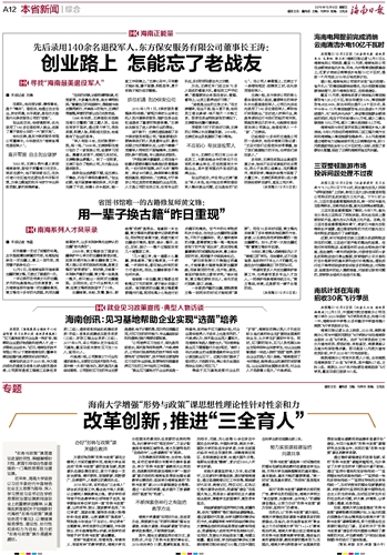 海南日报 本省新闻综合 012 2019-12-061 2019年12月06日 星期五