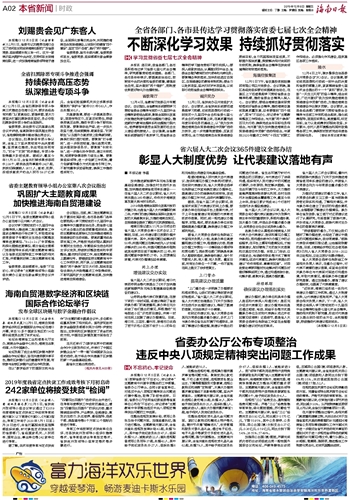 海南日报 本省新闻时政 002 2019-12-061 2019年12月06日 星期五