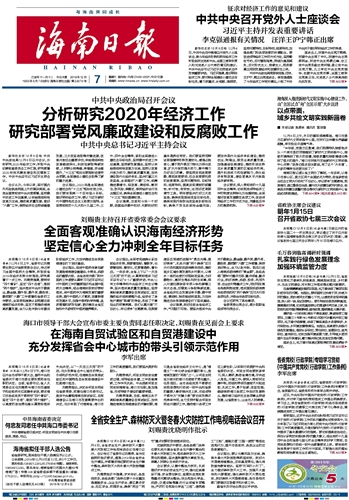 海南日报 头版 001 2019-12-071 2019年12月07日 星期六