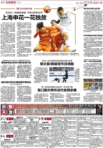 海南日报 文体新闻综合 012 2019-12-071 2019年12月07日 星期六