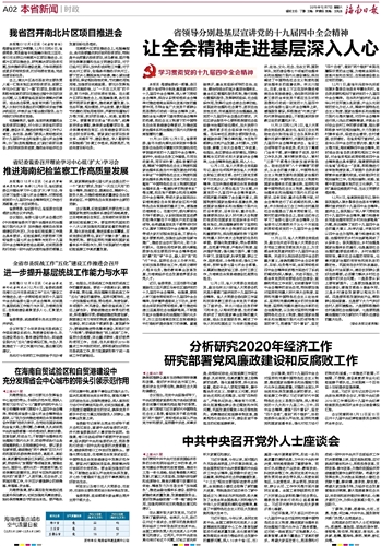 海南日报 本省新闻时政 002 2019-12-071 2019年12月07日 星期六