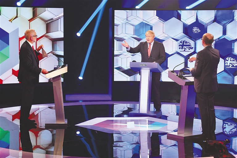 英国脱离欧洲联盟依旧是辩论主要议题。约翰逊的竞选主张在于,如果保守党在12月12日议会下院选举后继续执政,“脱欧”协议将在12月25日前再度交由议会下院表决,这意味着英国仍有可能在明年1月31日“脱欧”期限到来前“脱欧”。