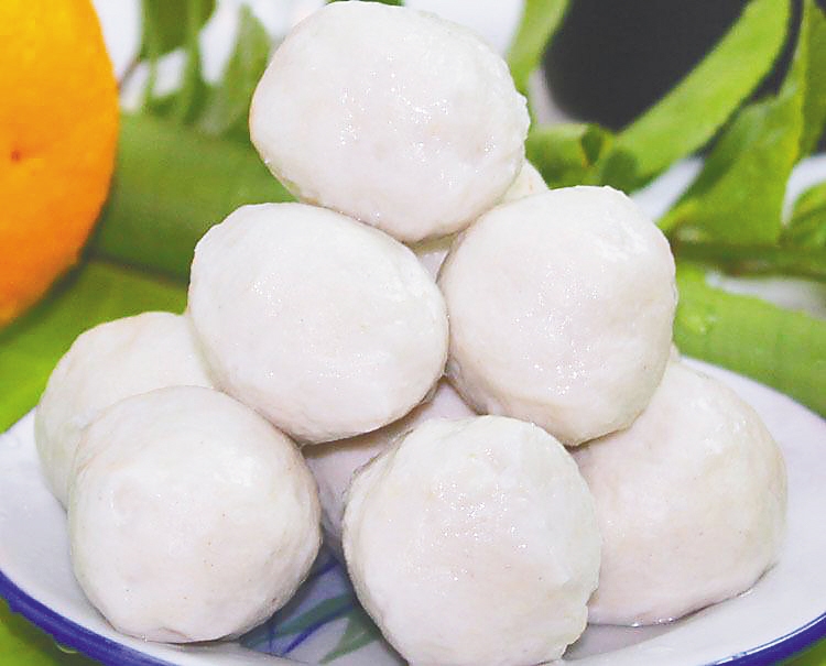 鱼丸的制作相对麻烦,于是疍家人有时就地取材,把鱼肉戳成一个个白色的圆团,便是意味着平平安安、团团圆圆。