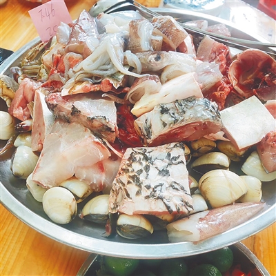 三亚红沙码头是三亚疍家人的聚居地。今年近60岁的疍家人郑川里自小就和父母居住在三亚海畔,曾经是渔民的他,如今在海边开起了海鲜大排档。尽管赖以谋生的行当发生了变化,但郑川里介绍,在鱼的吃法上,他们仍旧延续了疍家人的传统——过春节时,要吃手打鱼丸。疍家人一般将新鲜的马鲛鱼肉手工剁碎,加盐、生粉等佐料拍打成肉泥,捏成一个个圆滚滚的鱼丸。鱼丸可煎可煮,用来涮火锅最受欢迎,鲜美Q弹。