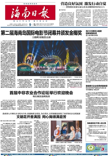 | 海南日报 头版 001 2019-12-091 2019年12月09日 星期一 |