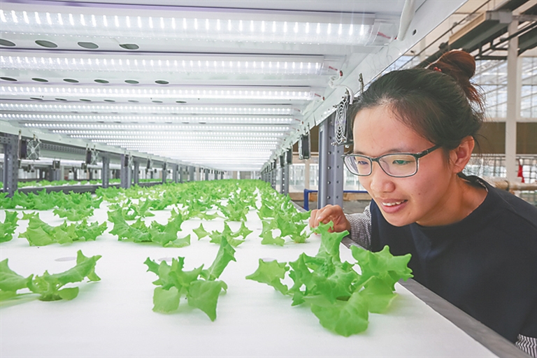 “不需要土壤,不需要阳光,大棚里的蔬菜也能长得十分茂盛。这简直是黑科技!”走入农业梦工厂,大棚里的无土种植立体栽培系统中种植的蔬菜引起了东山中学初一学生杨文静的注意。