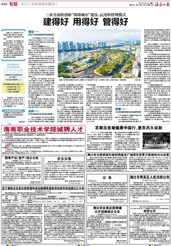 海南日报 关注三亚海绵城市建设⑥ 010 2019-12-101 2019年12月10日 星期二