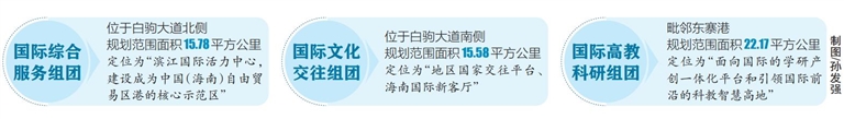 根据规划,三大国际组团将遵循“共生、共荣、共享”规划理念,引领海南自贸区、自贸港示范区建设。