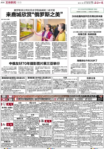 海南日报 文体新闻综合 014 2019-12-111 2019年12月11日 星期三