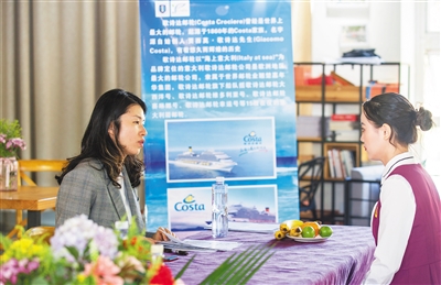 12月11日,在三亚理工职业学院,面试官正在对该校应届毕业生进行一对一面试。 当天,歌诗达邮轮公司中国区唯一指定招募派遣公司——上海长航船员管理有限公司在三亚理工职业学院开设校园专场招聘会,这是该公司首次在琼进行校园招聘。本次招聘会提供近百个工作岗位,岗位类型达30余种,覆盖邮轮前厅、客房、餐饮、免税店、娱乐部等。