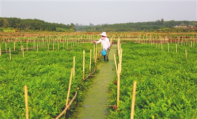 目前该基地已种植水芹60亩、甜菜50亩、蒜苗50亩、茼蒿10亩、香菜10亩、葱5亩,计划于2020年1月13日投入市场,将持续供应到农历正月十五,满足市民对春节期间的特殊菜品需求。