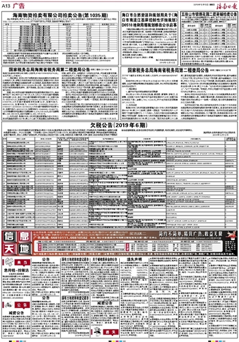 海南物资拍卖有限公司拍卖公告(第1035期)