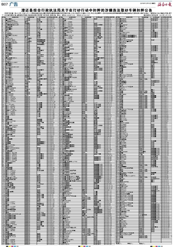 澄迈县综合行政执法局关于在打砂行动中扣押的涉嫌违法取砂车辆扣押公告