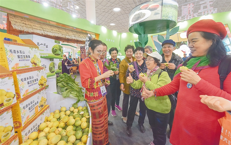 ④ 12月13日,2019年冬交会五指山馆,绿色农副产品让逛展市民点赞。