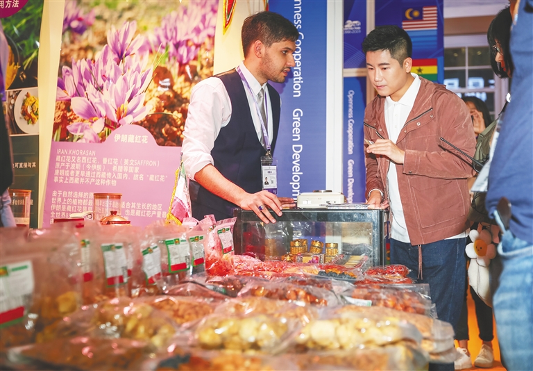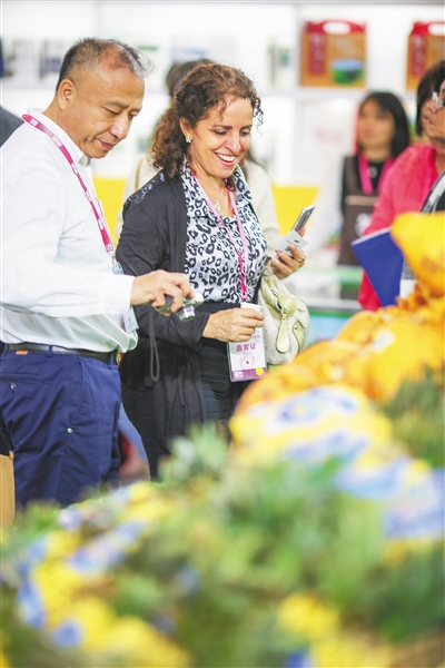 ② 12月13日,冬交会上的特色农产品吸引了外国消费者关注。