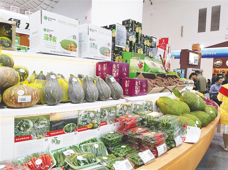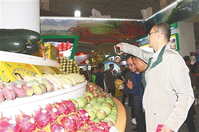 12月13日,在海南国际会展中心冬交会昌江馆,琳琅满目的特色农产品吸引了不少消费者和客商的关注。