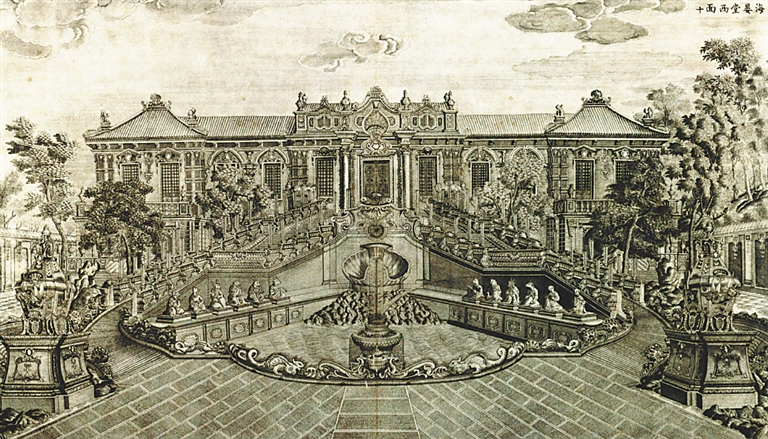 圆明园与颐和园毗邻,由圆明、长春和绮春三园组成,始建于康熙四十八年(1707年)。其原为康熙帝赐予皇四子胤禛(雍正帝)的花园,门上的匾额“圆明园”为康熙御笔亲书。雍正即位后,继续修整园内的亭台楼榭,因其审美清素淡雅,故而“辟田庐”“营蔬圃”,使园中更具幽美之气。乾隆年间,西式建筑的审美风格在圆明园中逐步显现,如远瀛观、方外观和海晏堂皆为西洋楼式样的杰作,带有明显的“巴洛克”艺术风格。