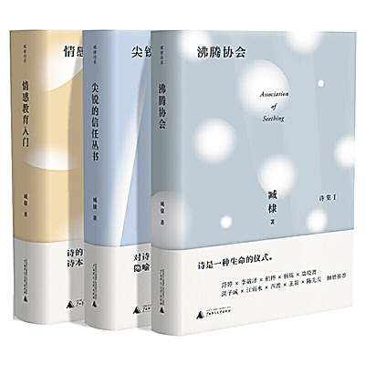 “臧棣诗系”由《沸腾协会》《尖锐的信任丛书》《情感教育入门》三本诗集组成,集中展现了2000年至今诗人的创作风格与成果。三本书分别以“协会”“丛书”“入门”作为诗歌后缀,达成形式上的统一,也在内容上互相关联,组成一个庞大的诗歌群。三本书有着共同的写作精神:以诗人最基础的两种工具——感受力和语言,去体察、摩挲存于日常的微小之物。诗人强化自己的智性、锐化自己的感受力,以此真正进入微小事物之中,勾勒它们鲜活的样貌,与此同时,它们也进入诗人,让作为人的诗人也焕然一新,乃至脱离了庸常。这种人与事物彼此揩拭对方表面尘土的感受方式,给了永远忙碌、因此感受力渐渐迟钝的读者一种对待世界的范式。