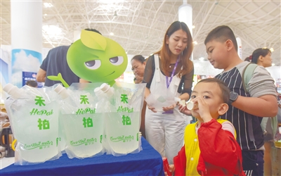 在文昌馆,“文昌椰子”的展示牌格外醒目。“这是纯椰子水经过新技术加工制作而成的,口感好,无添加,请您品尝一下。”海南欧耶生态发展有限公司负责人欧莱东拿着一瓶瓶装椰子水吆喝。他介绍,海南椰青市场目前存在两个痛点,一是椰青非常受市场欢迎,但是笨重不方便携带。二是现有技术在进行椰子水加工时,利用高温灭菌技术,容易破坏椰子自身营养成分,“我们利用HPP超高压冷杀菌锁鲜保鲜技术克服了上述难题,让椰子水更便于携带、更安全、保质期可达60天。”