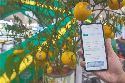 在海南农垦,前来参展的市民游客对一棵身上贴满着“二维码”的橙子树充满好奇。“这是真的橙子树。您只要扫一扫二维码就可以追溯橙子的生长过程。您看,橙子采摘时间是2019年12月10日,上面还显示温度、湿度和农事记录。”金垦赛博信息科技有限公司项目经理王立波说。