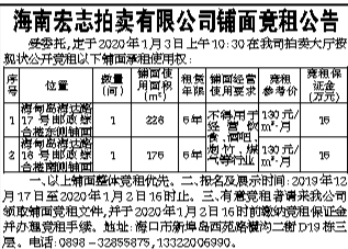 海南物资拍卖有限公司拍卖公告(第1036期)