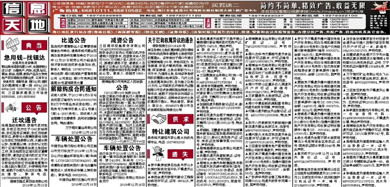 海南物资拍卖有限公司拍卖公告(第1036期)