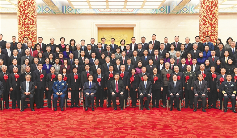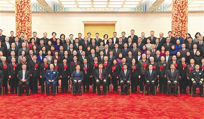 上午10时,习近平等来到人民大会堂金色大厅,全场响起热烈掌声。习近平等同代表们亲切握手,不时交谈,并同大家合影留念。