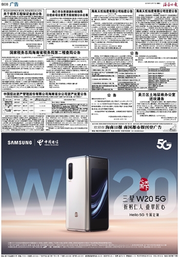 海南日报 广告 016 2019-12-171 2019年12月17日 星期二