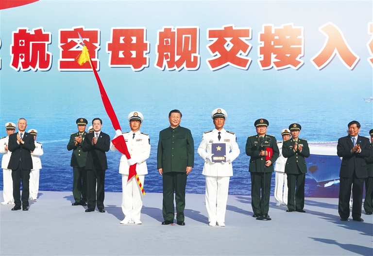 新华社三亚12月17日电(记者李宣良 黎云)我国第一艘国产航空母舰山东舰17日下午在海南三亚某军港交付海军。中共中央总书记、国家主席、中央军委主席习近平出席交接入列仪式。
