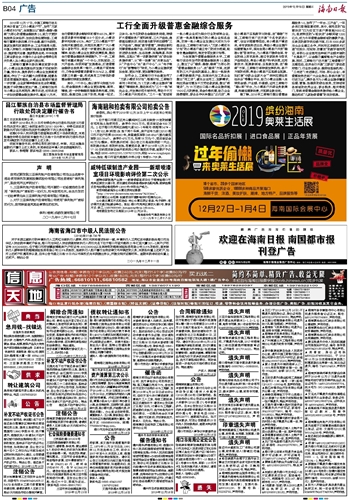 海南省海口市中级人民法院公告