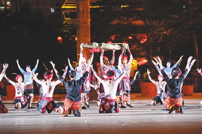“不管你来自哪里,不管你听不听得懂我们的语言,我们都要祝福你,让你幸福!”入夜后的七仙文化广场,由保亭民族歌舞团等带来的民族歌舞演出,展演了竹竿舞、火把舞、平安舞、打碗舞等多种传统歌舞,而篝火晚会和嬉水狂欢两大亮点也吸引大批群众及游客参与互动。