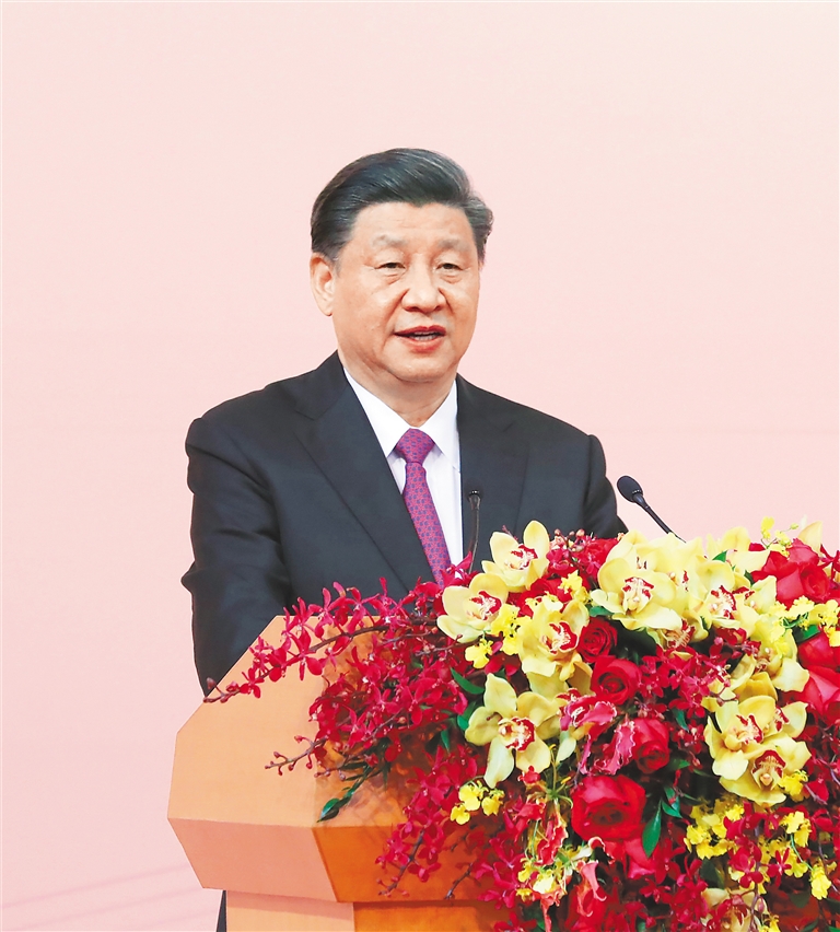 习近平表示,时隔5年再次来到澳门,深切感受到澳门发展日新月异,澳门同胞当家作主风貌昂扬向上,澳门特别行政区前进步伐坚实有力。
